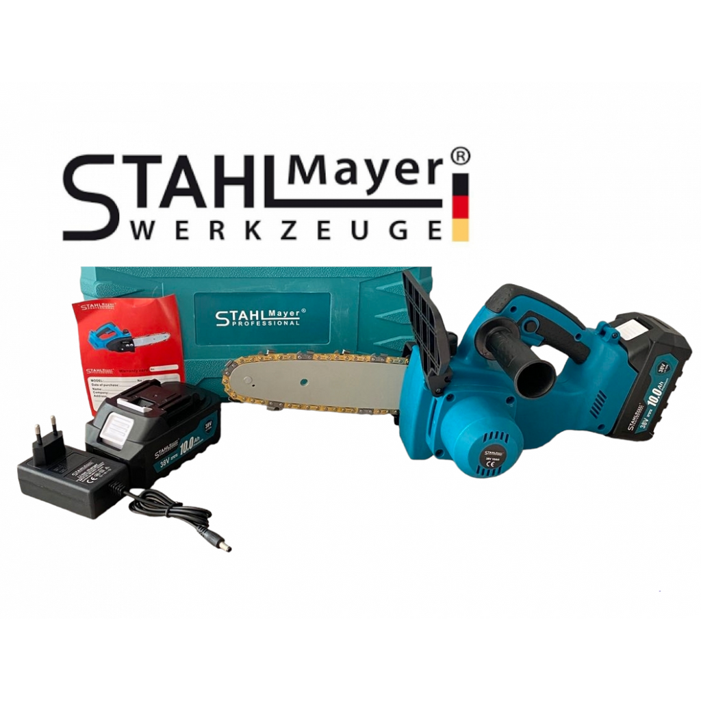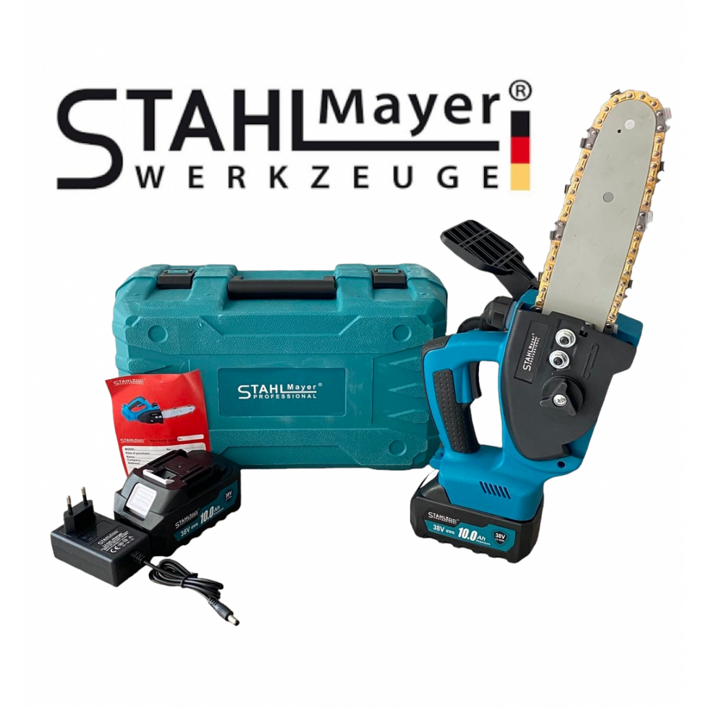 НЕМСКИ АКУМУЛАТОРЕН ТРИОН STAHLMAYER 38V 10AH + 2 ВЕРИГИ – РЕЗАЧКА ЗА КЛОНИ С ОМАСЛЯВАНЕ НА ВЕРИГАТА 25СМ ШИНА