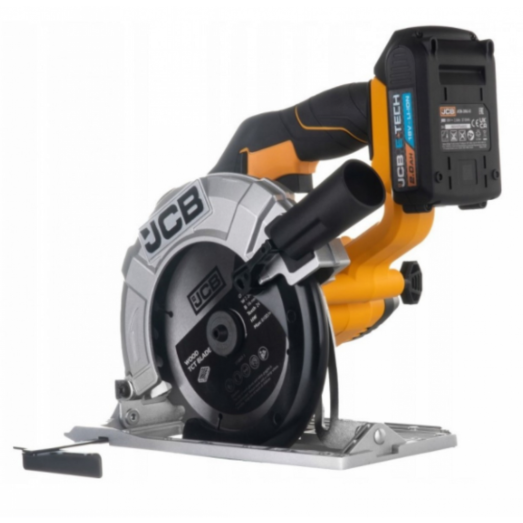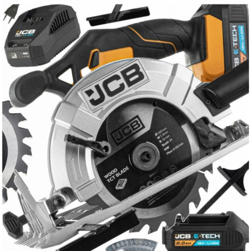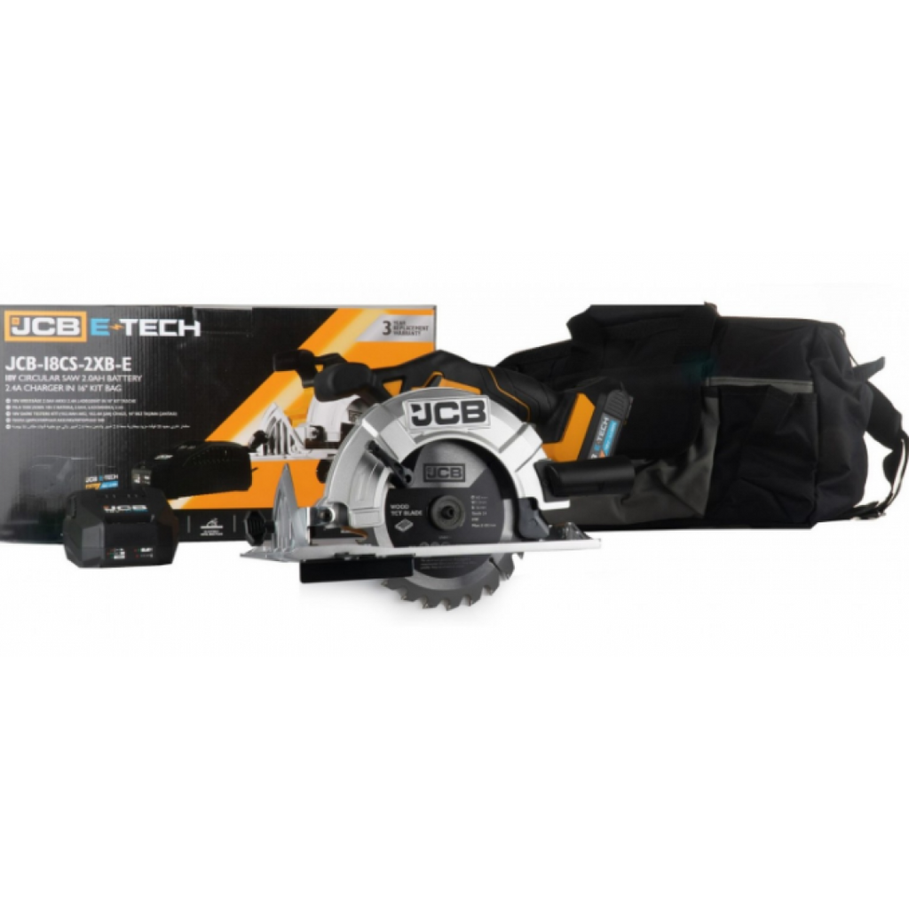Акумулаторен ръчен циркуляр JCB 18CS-2XB-E се захранва от 18 V батерия. Високата скорост от 3650 оборота в минута осигурява бързи и прецизни срезове, алуминиевата основна плоча е много лесна за регулиране при скосяване до 45 °. Ергономичният дизайн с гумирана повърхност за захващане позволява висок комфорт на потребителя и перфектно управление. С него работата е безопасна благодарение на електрическата спирачка. Доставя се с батерия и зарядно устройство и сак за инструменти 16" в картонена кутия.