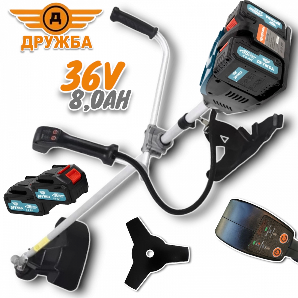 Мощна Руска Акумулаторна ръчна коса mun Тример е с широчина на косене 240 мм и се захранва с 36 V Li-Ion батерия.