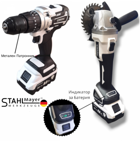 Безчетков Акумулаторен Ъглошлайф STAHLMAYER 36V 8,0 Ah: