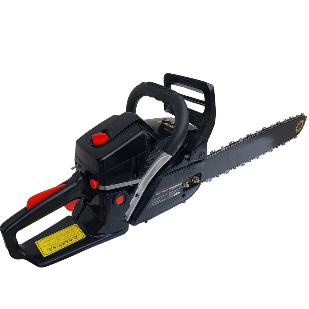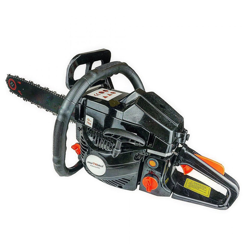 Изключително качествена професионална бензинова моторна резачка- трион със супер усилен двигател с мощност 68 кубика . Мек стартер, професионална шина 46cm и верига, високооборотен карбуратор и всичко това съчетано с най-новата модерна технология на KraftWorld за бензинови моторни резачки- триони от най-ново поколение.
