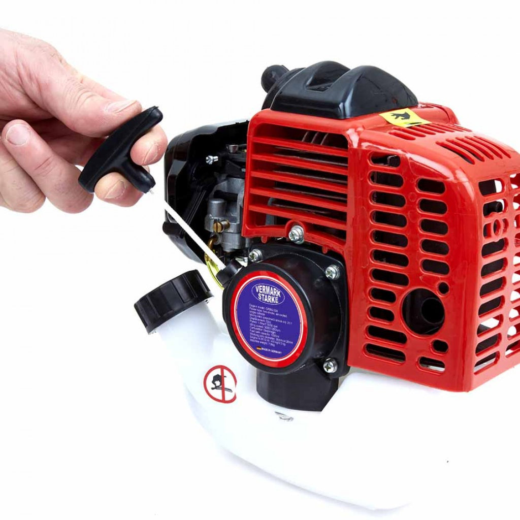 тример за трева Vermark Starke GRBG520 с екологичен и мощен двигател. Оборудвана с мултифункционална ръкохватка с темпомат за потдържане на постоянна газ и ергономично водене на уреда. Подходящ за честа употреба с голямо натоварване.