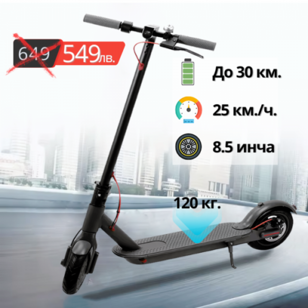 Спестете си време и нерви в големите задръствания и закупете Електрическа Тротинетка с 3 Степени, Автономия 30 км, Максимална Скорост 30 км/ч :Лека, удобна, бърза. Купете и се очаровайте от прекрасния дизайн.