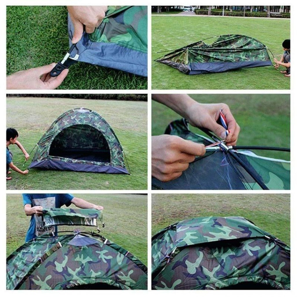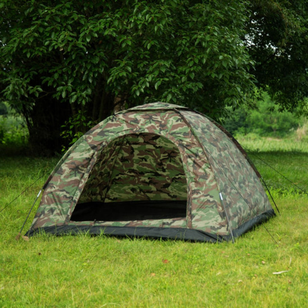 Камуфлажна четириместна палатка, идеална за къмпинг, излет, почивка на планина или море.