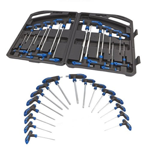 Този професионален комплект от Г-образни шестограми и торксове е идеален избор както за сервизи и авторемонтни работилници, така и за домашно ползване. Инструментите са прегледно подредени в компактна кутия за съхранение и са изработени от висококачествени материали, които гарантират здравина и дълъг експлоатационен живот.