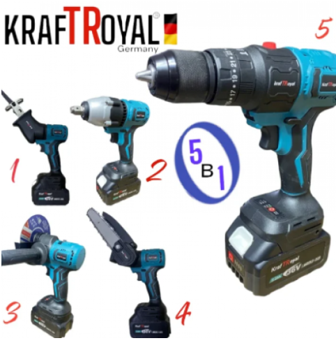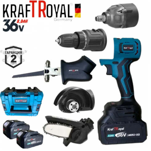 5в1 Мултифункционален Акумулаторен Инструмент 5 Глави 36V 8,0AH KRAFT ROYAL ВинтовертГайковерт Саблен Трион Резачка за Клони и Ъглошлайф
