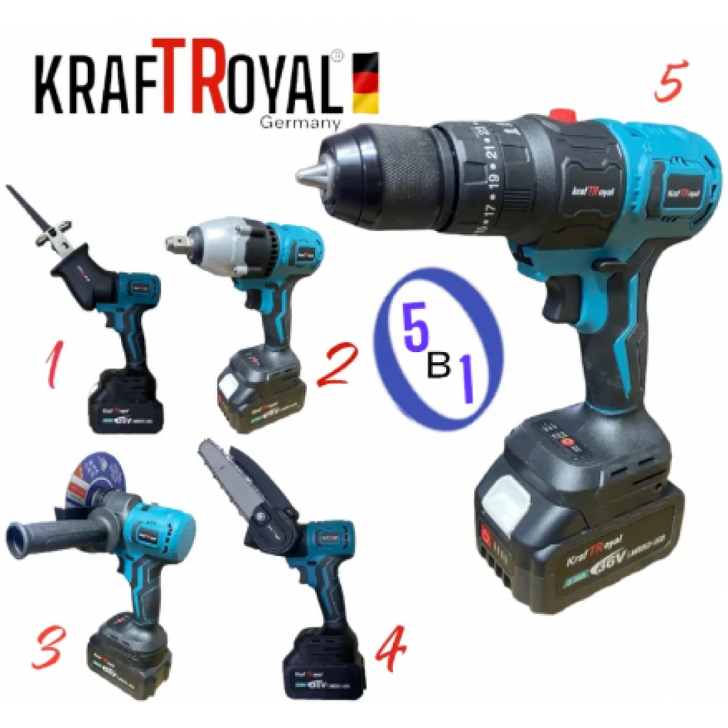 5в1 Мултифункционален Акумулаторен Инструмент 5 Глави 36V 8,0AH KRAFT ROYAL ВинтовертГайковерт Саблен Трион Резачка за Клони и Ъглошлайф