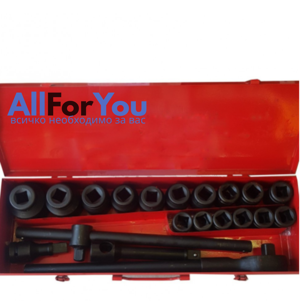 Комплекта съдържа:Тресчотка 495 ммВърток Т образен 456 ммУдължения 2 бр.100/200 ммВложки 16 бр. 1/2 ''( 19,21,22,23,24,26,27,30,32,34,36,38,41,46,48,50)