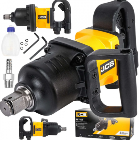 Пневматичен ударен гайковерт JCB , RP7463 е с максимален въртящ момент 2000 Nm. С подсилен корпус от устойчив композитен материал. Лесна работа . Устройството има регулируема сила на затягане и разхлабване. Ергономична дръжка и компактен размер.