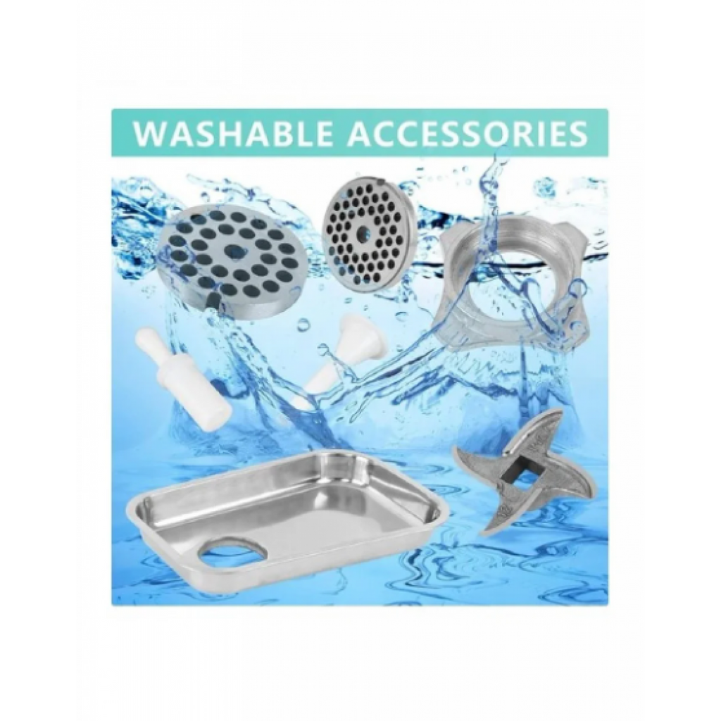 Месомелачката се предлага в комплект с два висококачествени ножа и решетка, което позволява по-голяма гъвкавост при обработката на различни видове месо.