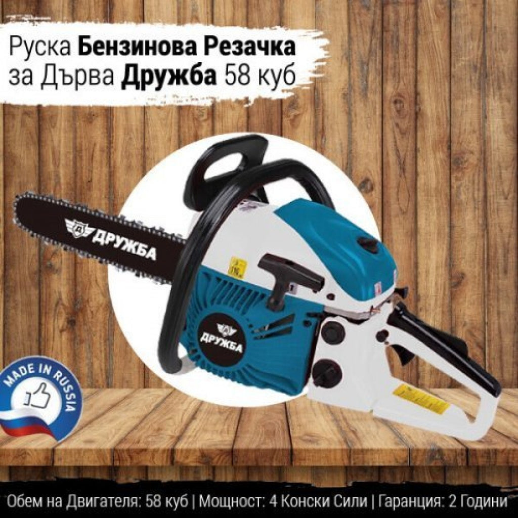 Руска Бензинова Резачка за дърва Дружба 58 куб. е с 2 години гаранция