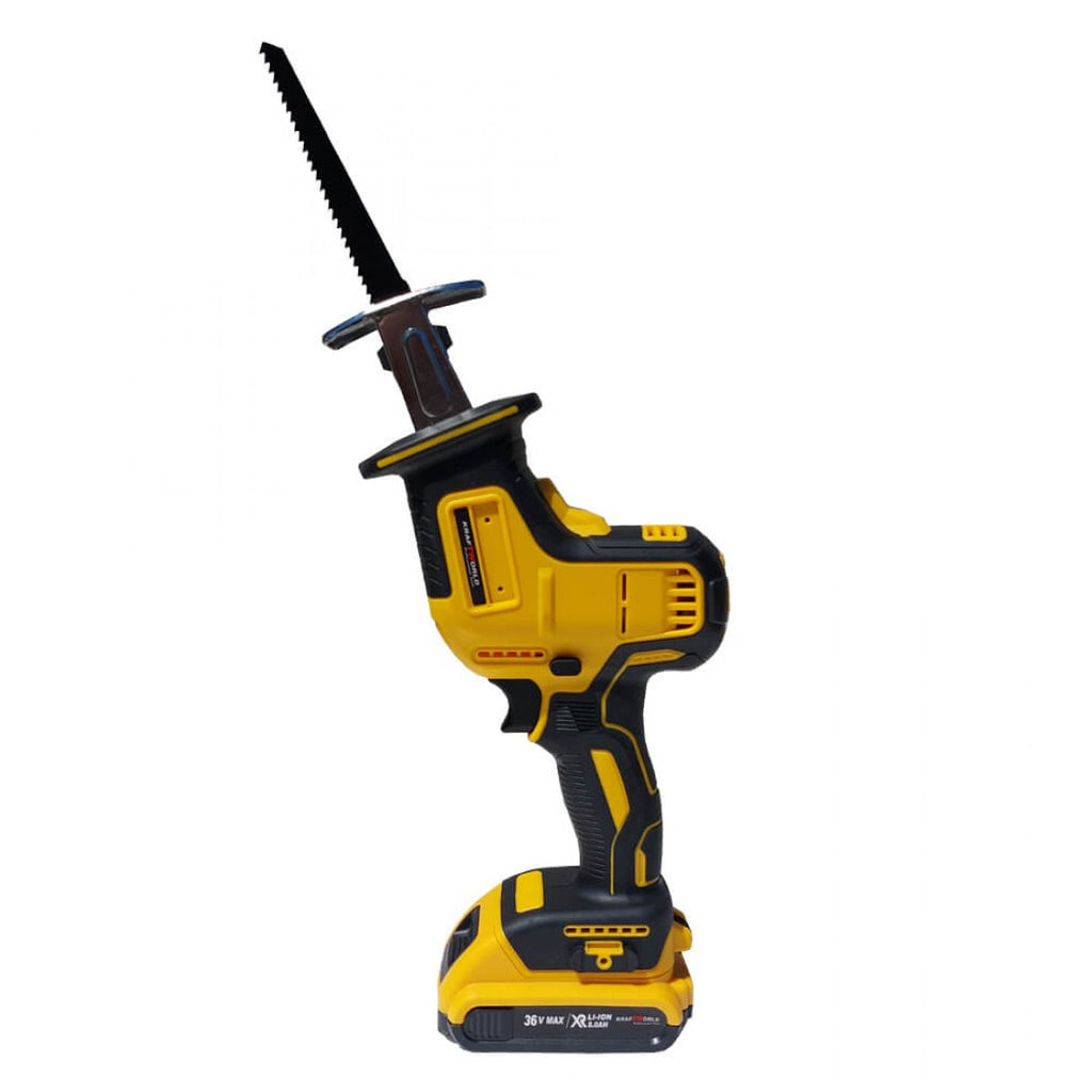 Акумулаторен Саблен Трион KRAFT WORLD 36V 8Ah е лек, изключително удобен трион за работа с една или две ръце. Особено подходящ за работа в труднодостъпни места. Бързо за смяна на трионите без инструменти. Разширен обхват на приложение, благодарение на уникалния бърз фиксатор за шаблони и триони.
