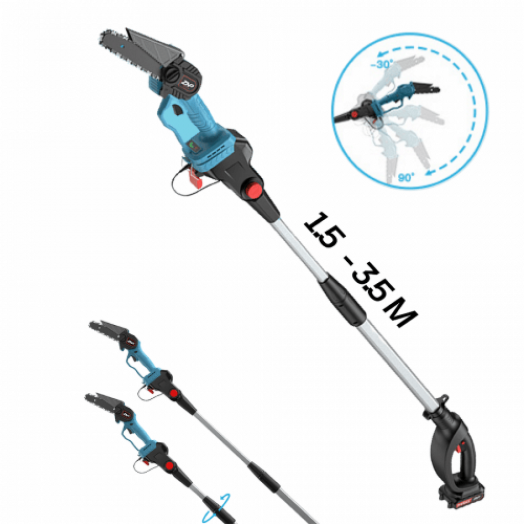 Телескопичен прът за акумулаторен трион за клони e с голям диапазон приложение в овощарство и градинарство. Дължината на пръта е с диапазон 1.5- 3.5 м с е напълно универсалне. Подходяща е за поддръжка на всякакви видове овощни дървета, за окастряне на клони на трудни за достигане места. В долната част на дръжката има превключвател за захранване.