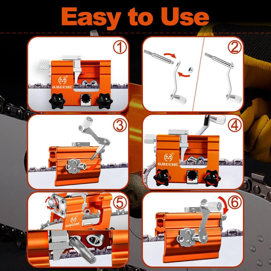 ЛЕСНА И ЕФЕКТИВНА ПРИСТАВКА ЗА ЗАТОЧВАНЕ НА ВЕРИЖНИ АКУМУЛАТОРНИ И БЕНЗИНОВИ РЕЗАЧКИ (ТРИОНИ) : Комплектът за заточване на верижни триони е проектиран да бъде изключително лесен за употреба, сравним с използването на острилка за моливи.
