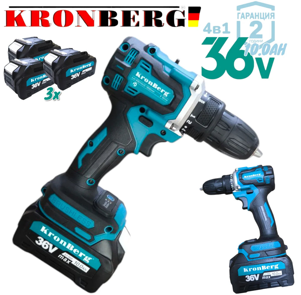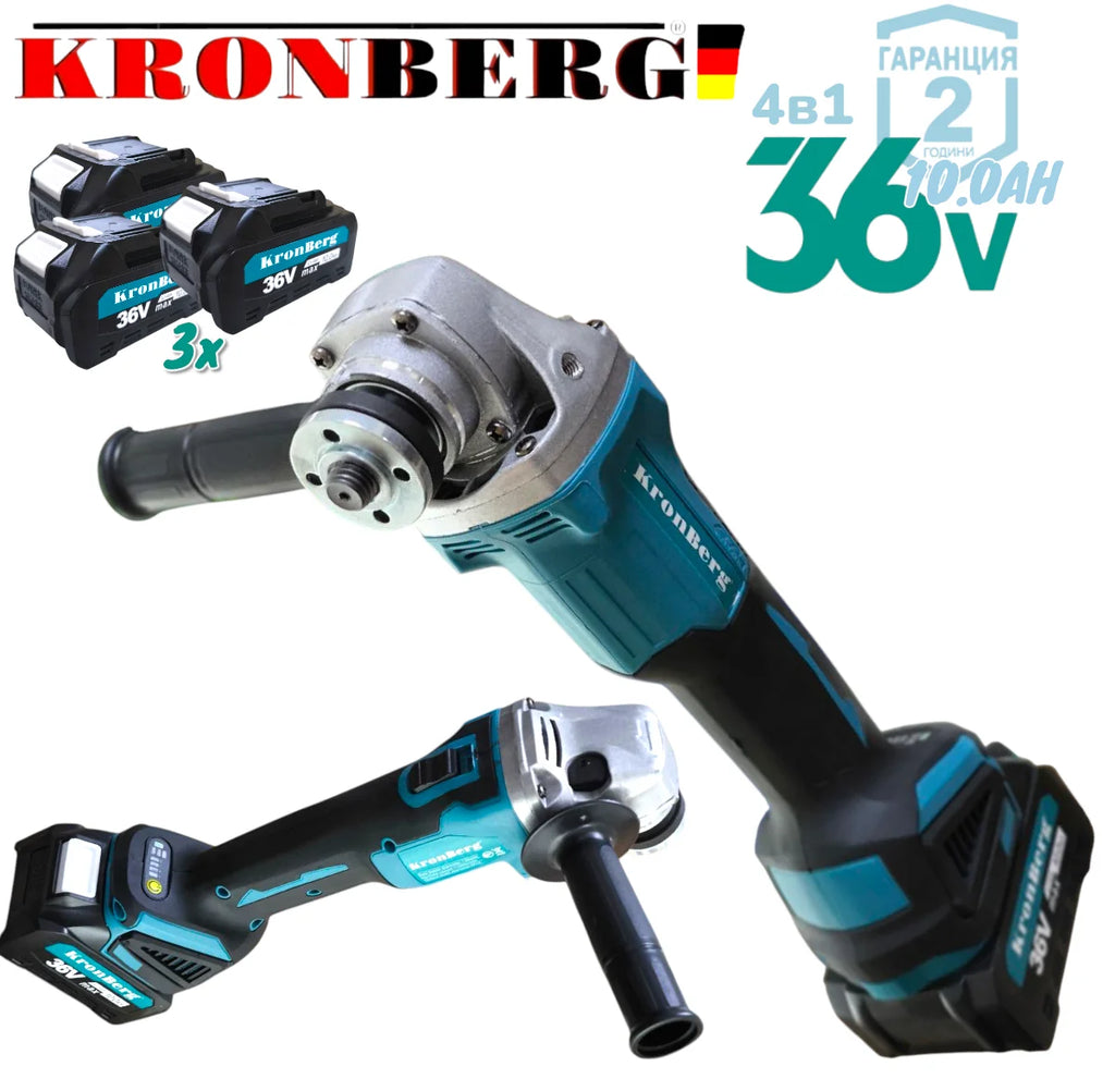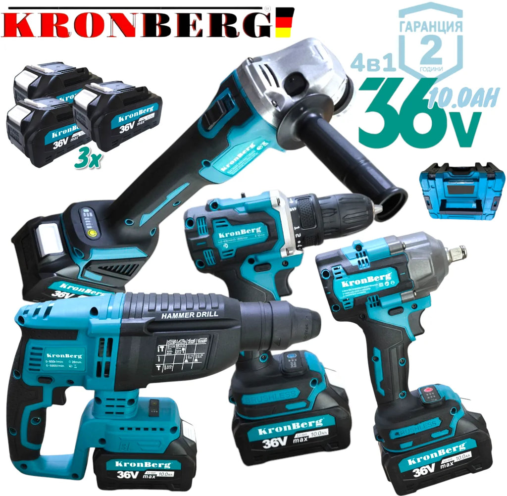 Акумулаторен Лазерен Нивелир Перфоратор Винтоверт Гайковерт-Импакт и Ъглошлайф 36V 10AH KRONBERG Комплект 5в1 с 5 Батерии