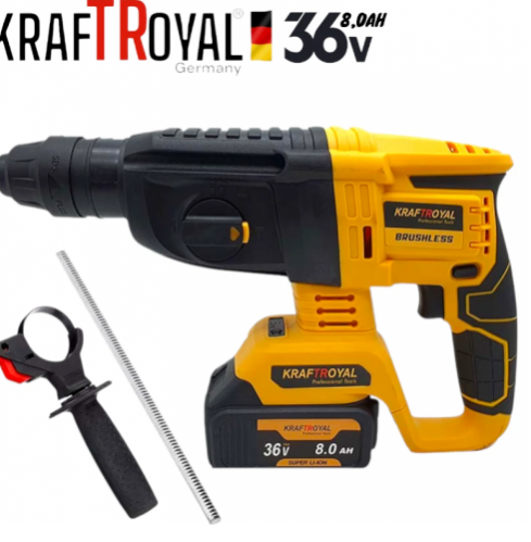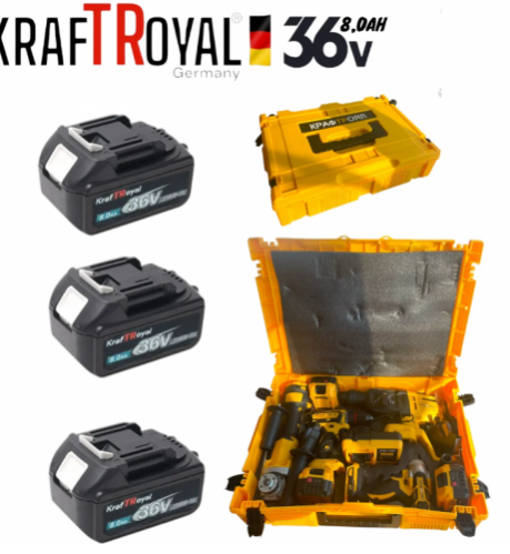 Акумулаторен перфоратор, ъглошлайф 125ММ, гайковерт и винтоверт KraftRoyal 36V с 3 бр. батерии 8AH в куфар и зарядно