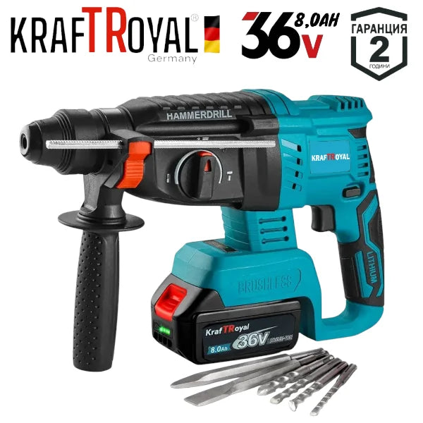 Акумулаторен Перфоратор Акумулаторен Ъглошлайф 125мм Акумулаторен Гайковерт/Импакт Акумулаторен Винтоверт 36V Акумулаторен Прожектор USB Лампа. 36V 8,0AH с 3 броя батерии и зарядно в куфар