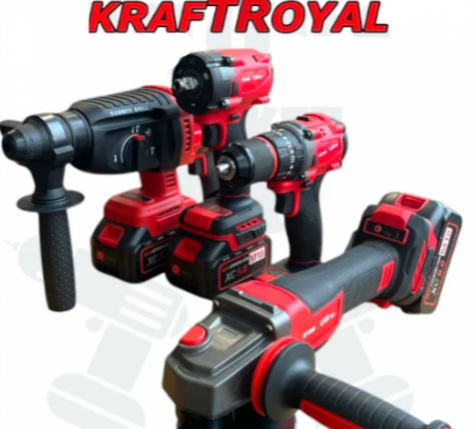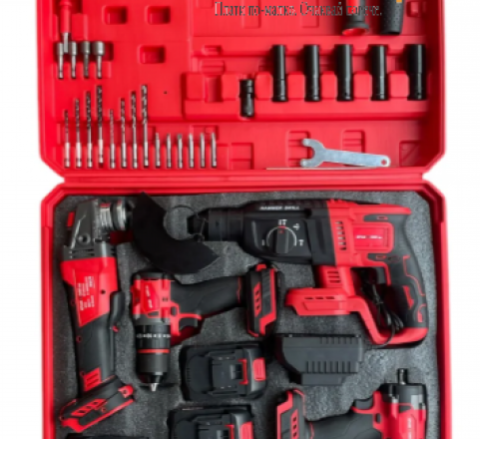 Акумулаторен перфоратор, ъглошлайф 125ММ, гайковерт и винтоверт 18V с 3 бр. батерии 5AH в куфар и зарядно