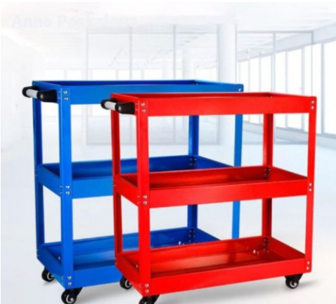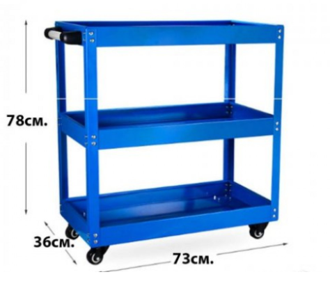Количка за инструменти с 3 рафта , усилена конструкция , прахово боядисана , с допълнително отделение за дребни инструменти .