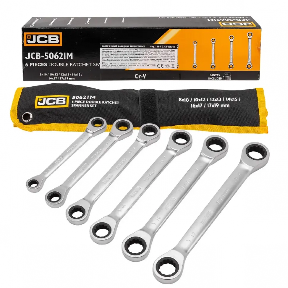 Комплект двустранни тресчотни ключове JCB – 6 части (8–19 мм) | Модел JCB-50621M