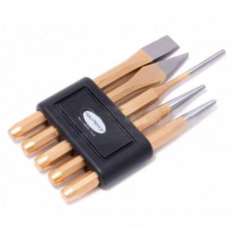 Комплектът съдържа:2x плосък секач 13x130 мм и 5x130mm 2x пробойник 3x120, 4x150mm 1х център 120mm В пласмасов държач