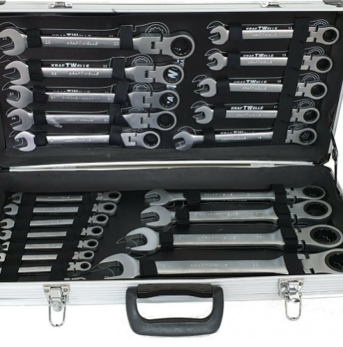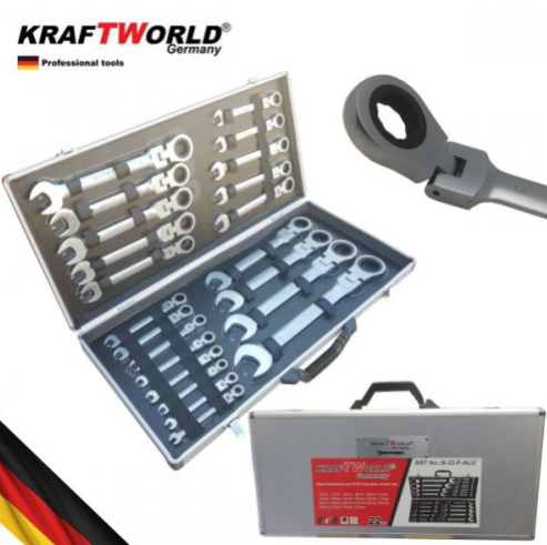 К-т звездогаечни чупещи тресчотни ключове от 6мм до 32мм 22 части в метален куфар KRAFTWELLE Germany