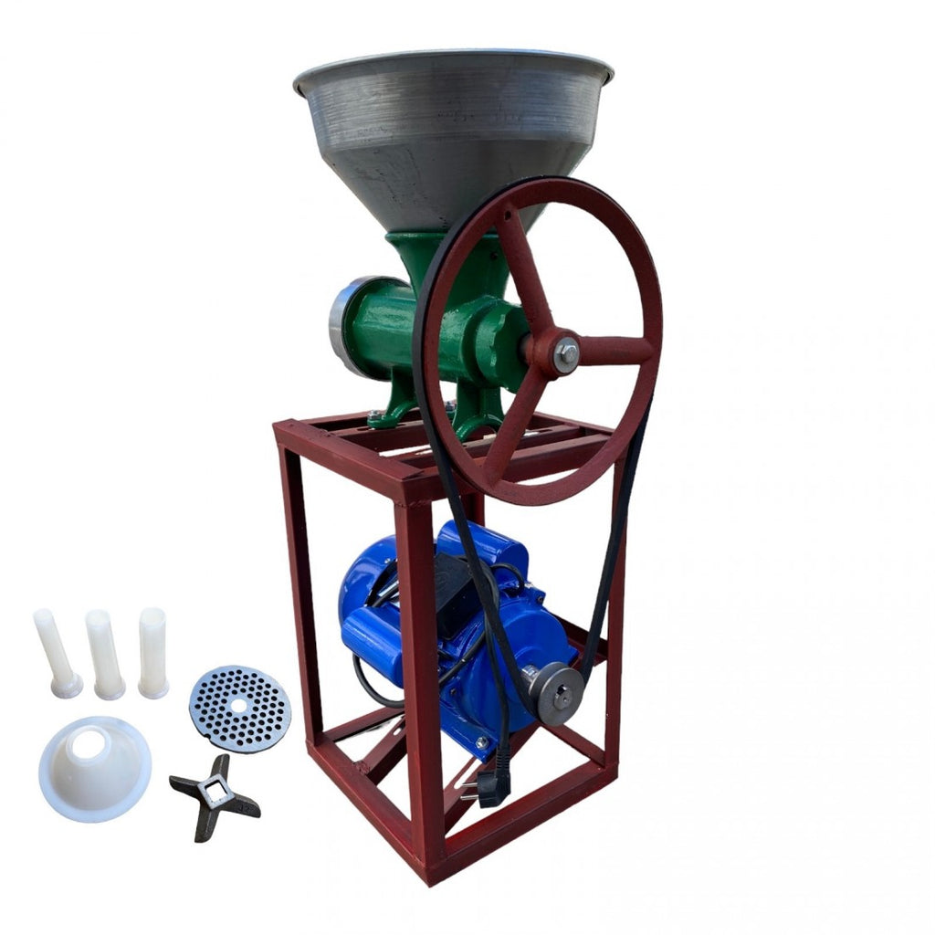 Чугунена Румънска месомелачка 32номер в комплект  електромотор с медни намотки ,  стойка и метална фуния