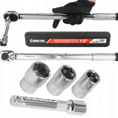 Ключ динамометричен 1/2 от 28 до 210 Нм със заключванекомплект с вложки - 3 броямарка : Mar-Pol