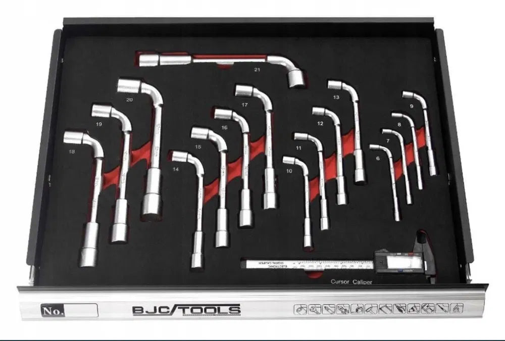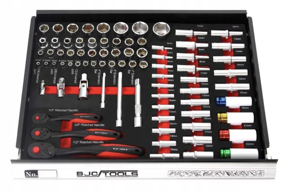 Комплект дълги гнезда 13 броя 8-9-10-11-12-13-14-15-16-17-19-21-22 1/2″ (включително гнезда, предназначени за отвиване на лети джанти, завършени с мека материал, за да не повредите деликатните джанти)