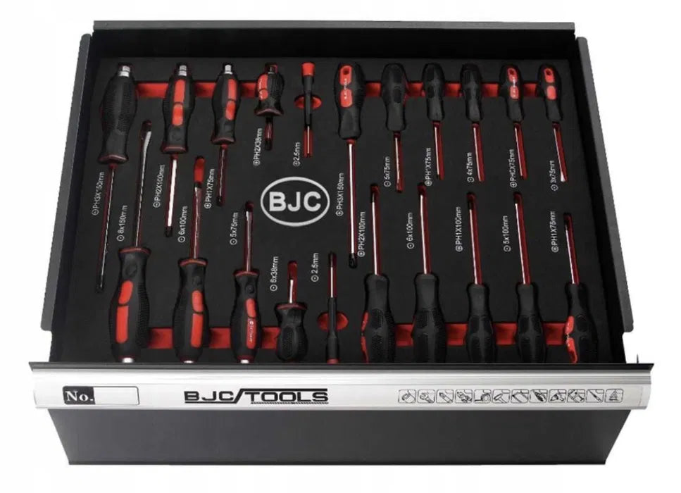 Комплект кръстосани и плоски отвертки: PH 3×150 мм, 8×150 мм, PH 2X100 мм, 6×100 мм, PH 1×75 мм, 5x 75 мм, PH 2×38 мм, 6×38 мм, 2.5 мм, 2.5 мм, PH 2X100 мм, 6×100 мм, PH 1×75 мм, 5x 75 мм, PH 2×38 мм, 6×38 мм, 2.5 мм, 2.5 мм, PH 1×10 мм, PH 1×10 мм, PH 1×10 мм 4×75 мм, 5×100 мм, PH 0x75 мм, PH 1×75 мм, 3×75 мм