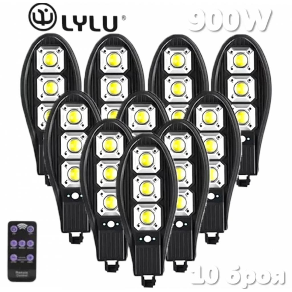 СОЛАРНА УЛИЧНА ЛАМПА 900W 10 броя е изцяло автономна и водоустойчива соларна лампа!
