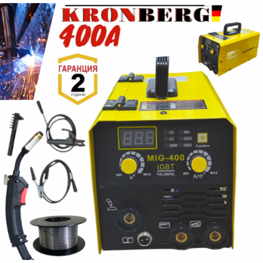 Телоподаващо Инверторен Електрожен 400А 2в1 Заваръчна Техника KRONBERG 2в1 + Соларен Шлем Предлагаме Ви компактен телоподаващ и електрожен инверторен апарат за заваряване с плюсова тел, без необходимост от газ СО2. Лесен и удобен за използване.