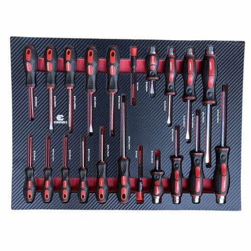 Комплект кръстати и плоски отвертки: PH 3×150 MM, 8×150 MM, PH 2X100 MM, 6×100 MM, PH 1×75 MM, 5x 75 MM, PH 2×38 MM, 6×38 MM, 2.5 MM, 2.5MM, PH 3×150 MM, PH 2×100 MM, 5×75 MM, 6×100 MM, PH 1×75 MM, PH 1×100 MM, 4×75 MM, 5×100 MM, PH 0x75 MM, PH 1×75 MM, 3×75 MM