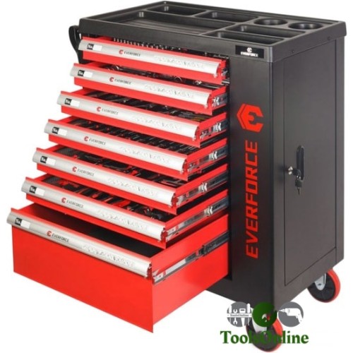 Количката има ергономични дръжки, интегрирани с плота на масата, напълно разтегателни чекмеджета с лагери. Централно заключване с два ключа, затварящи всички чекмеджета, както и двойни стени и блокиращи чекмеджетата. Количката е оборудвана с 4 колела, което улеснява транспорта. В допълнение, той има ъглови буфери (предпазва от случайни повреди, например каросерия на автомобила). Горната част е универсално перфорирана (изработена от полипропилен).