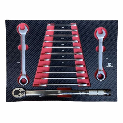 Комплектът включва звездогаечни ключове изработени от хром ванадиева стомана . Тресчотките са , изработени от хром-ванадиева стомана CrV6140. Тресчотките са оборудвани със системата QUICK RELASE и механизъм със 72 зъба.